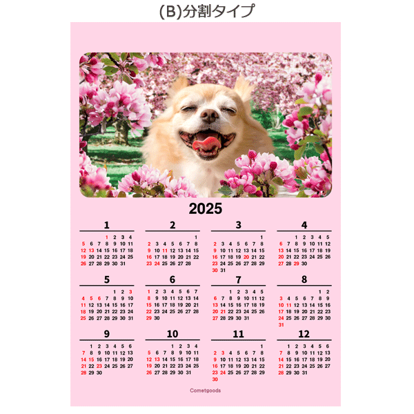 ※サンプルは2024年暦ですが、商品は2026年暦になります。 (A)全面タイプ